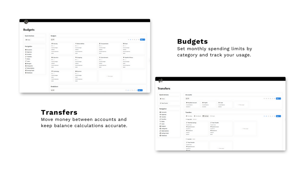 • Categories - Fully customizable spending categoriesEverything is connected. Update one database, and the others automatically reflect changes.